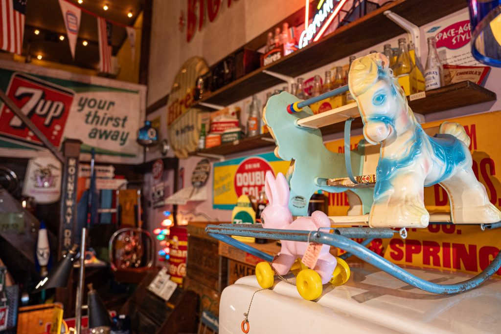 Thrift shopping is another major draw on Fussa Base Side Street, home to around 30 thrift stores selling everything from American vintage signboards and antique dining sets to cutlery and clothing you’re unlikely to find elsewhere in Tokyo. A good place to start is BIG MAMA, one of the street’s most iconic shops, conveniently located next door to The MINT MOTEL. Packed floor to ceiling with old-world home goods, retro appliances, and curios signage, it’s the kind of place where you can easily lose track of time while browsing. Farther along the street, Narnia and TABASA are also worth a stop, each adding its own flavor to the area’s eclectic secondhand scene.