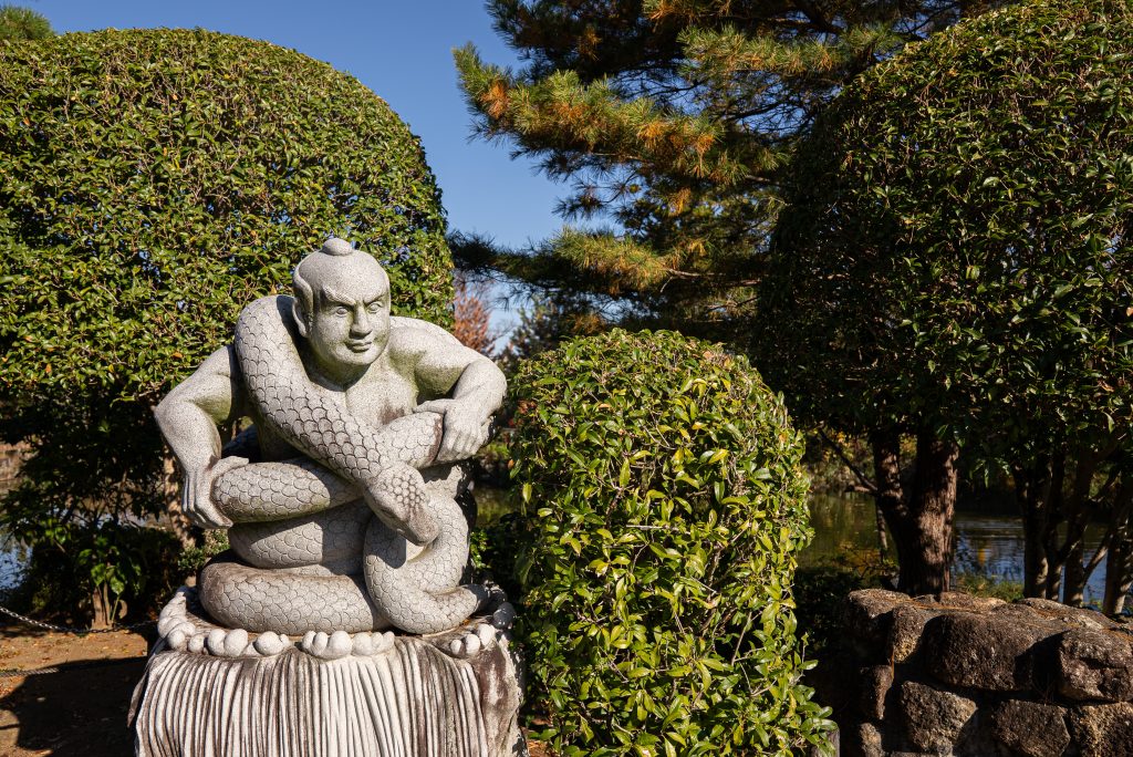 According to local records, Kumagawa Shrine’s history stretches back to the early Heian period (794–1185), when it was associated with the worship of Ugajin, a snake deity linked to fertility and prosperity. The approach to the shrine is lined with stone statues of the Shichifukujin, Fussa’s Seven Deities of Fortune, quietly guiding visitors toward the main hall.