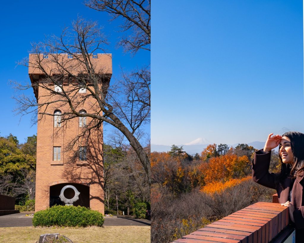 The park’s defining landmark is its red-brick observation tower, which rises 13 meters above the forest floor and offers a full 360-degree panorama—taking in distant Mt. Fuji, the ridges of the Chichibu Mountains, and, closer in, Shinjuku’s skyline and the surrounding suburbs.